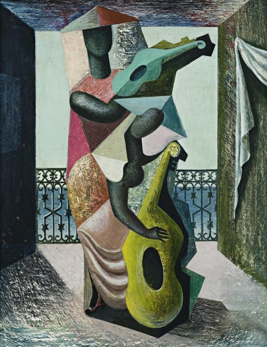 synthetic polymer paint, gouache, watercolour and ink on canvas